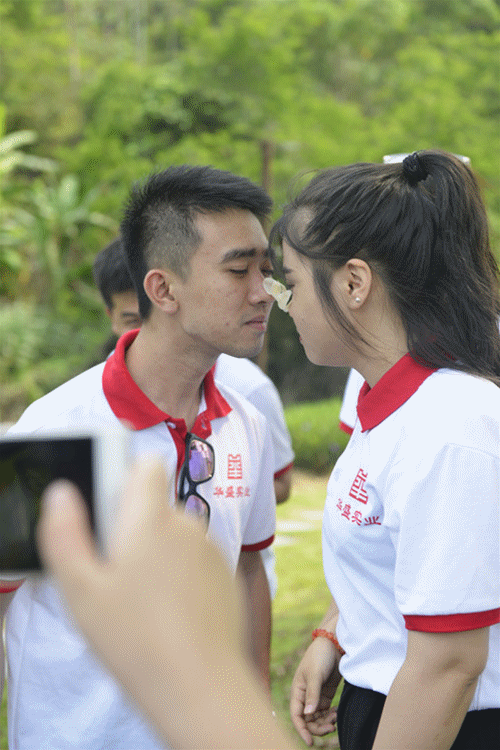 不能用手,只能用头部去碰